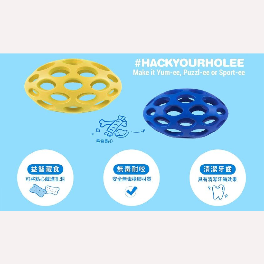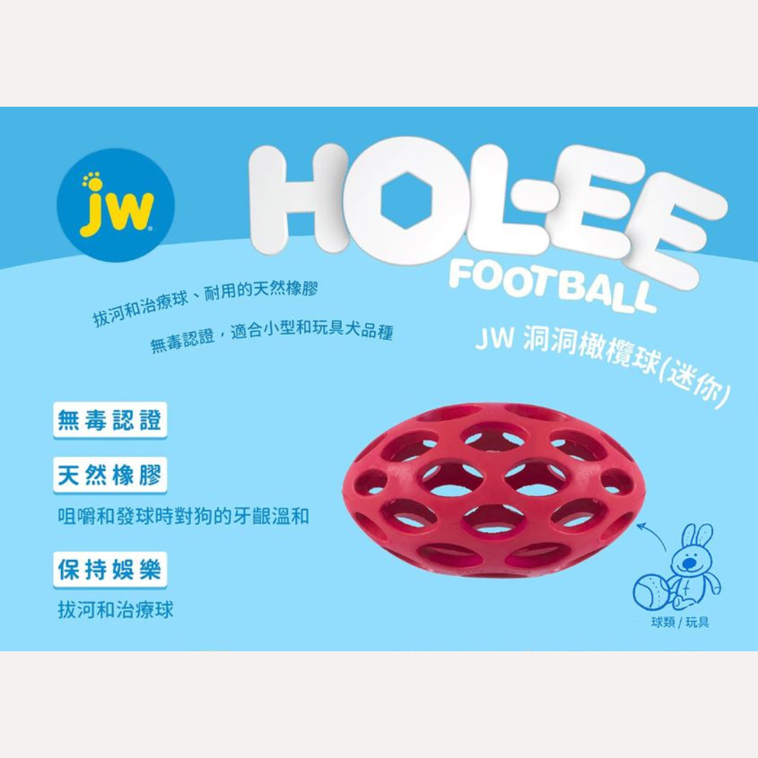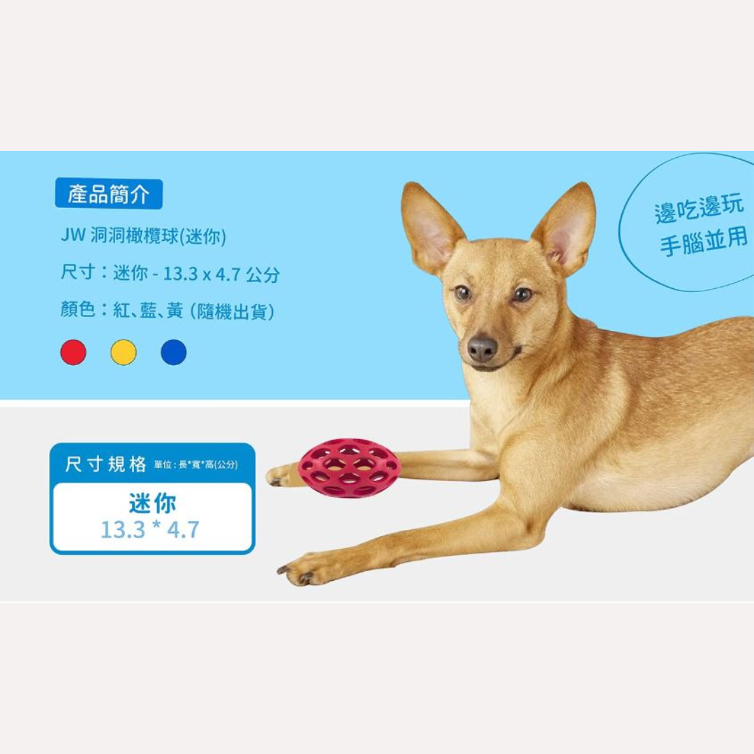 JW Pet洞洞橄欖球-迷你(三色 隨機出色)100%天然材質/顏色鮮豔/安全耐咬 洞洞球