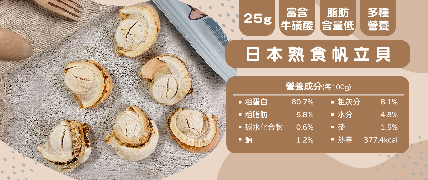 ●富含牛磺酸、B12 「日本熟食帆立貝」