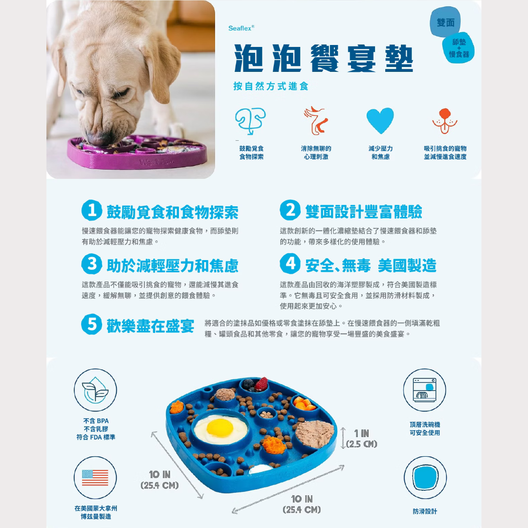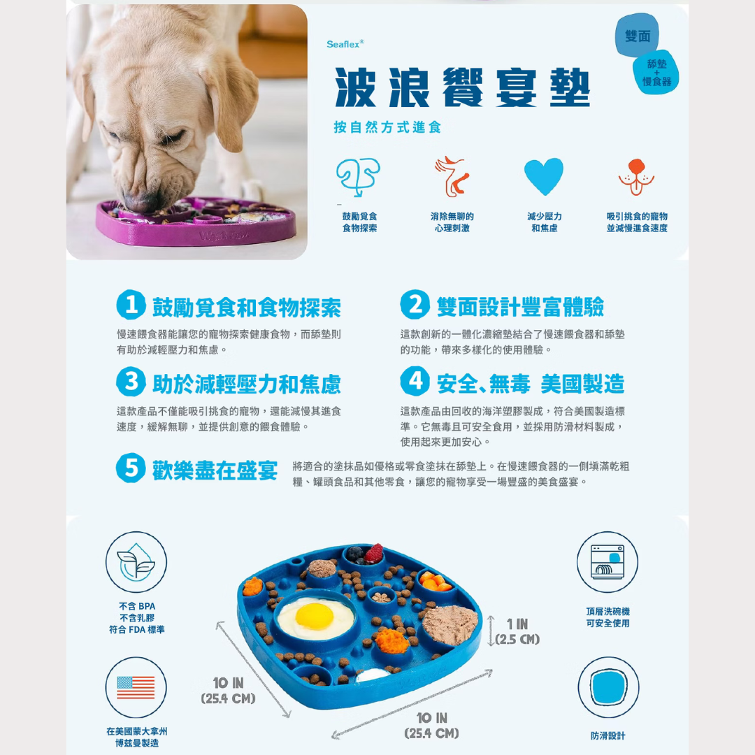 ★Feast Mat 有兩面: 慢食碗能讓您的寵物探索健康食物,而舔墊則有助於減輕壓力和焦慮。