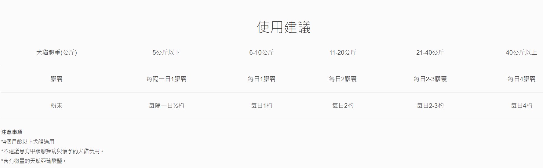 不建議患有甲狀腺疾病的動物使用。