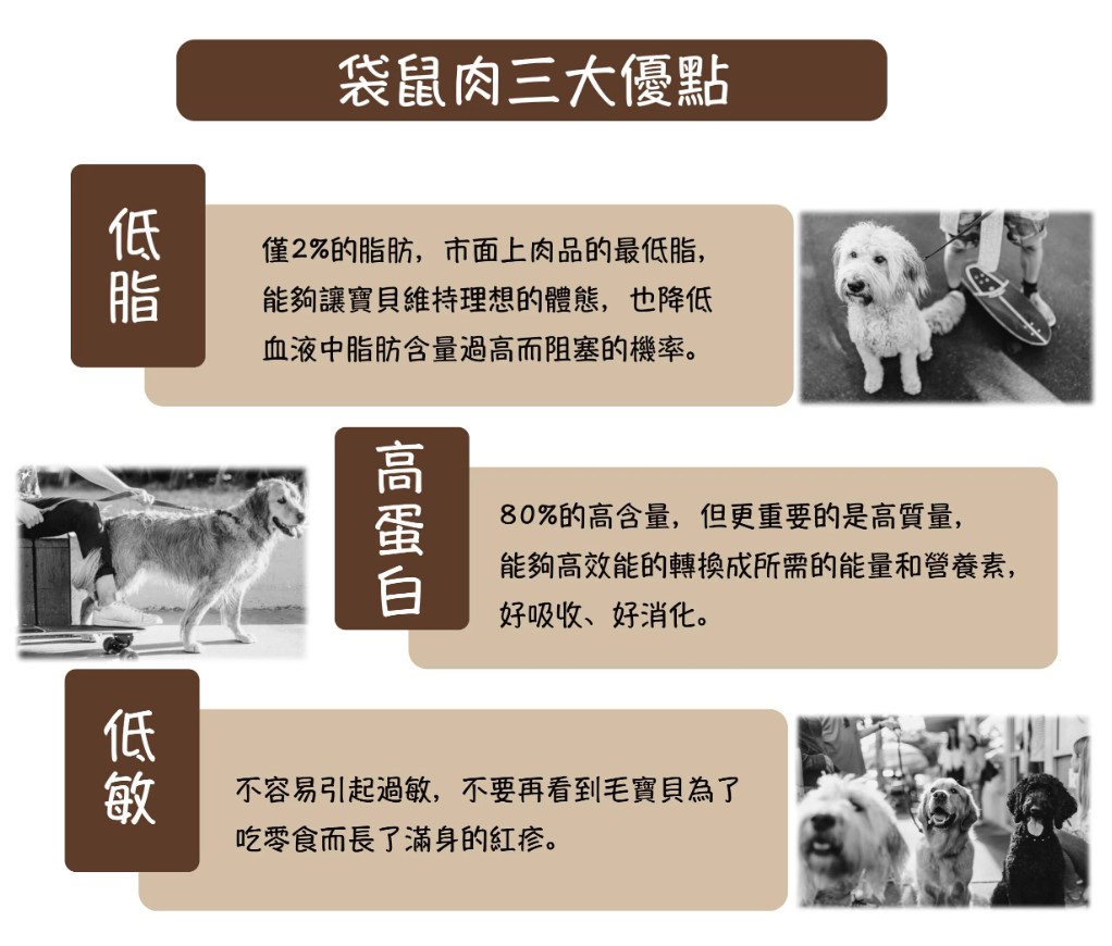 ◆ 袋鼠強壯的肌腱為純肉零食界的耐咬冠軍