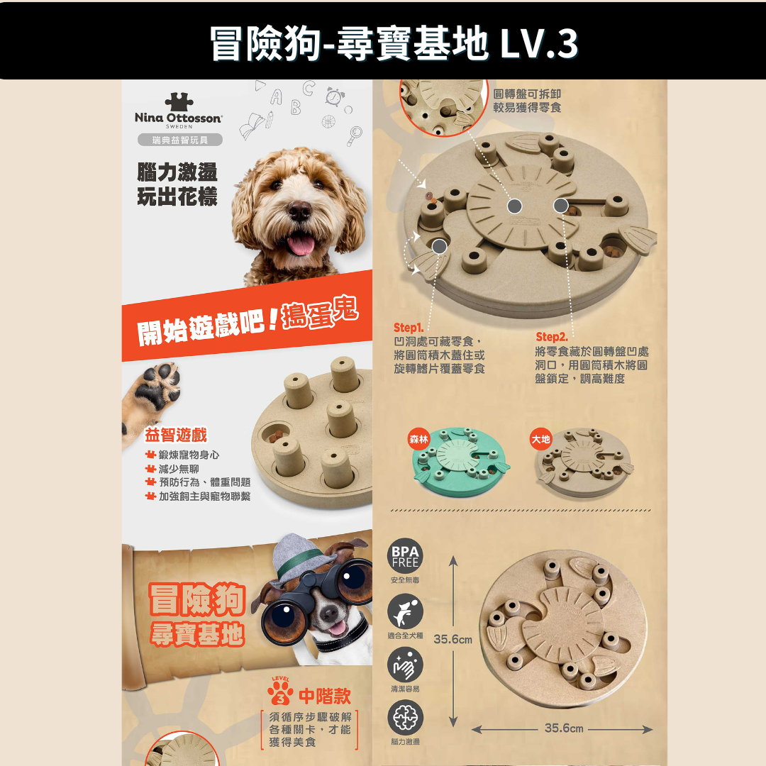 Nina Ottosson 冒險狗-尋寶基地(2色) LV.3/轉盤凹洞積木/藏食互動/安全無毒/清潔容易