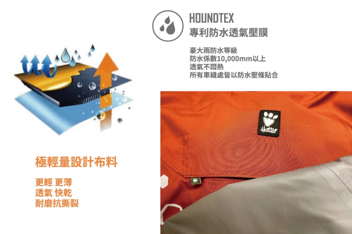• 專利 Houndtex 防水透氣壓膜 防水透氣不悶熱